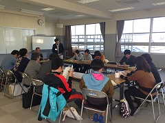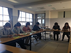 水沢小学校に集まり、第1回学びの一体化の会議を行い
