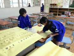 用の大きな歌詞カードの作成が、放課後の時間を使って進められています。
