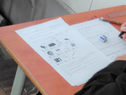 2年生英語 防災グッツのイラストをみて英文で答える問題のようです