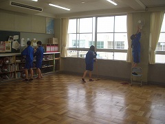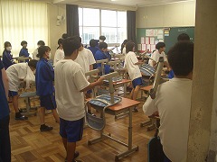 机や椅子の脚の埃を取ることから始まって、それぞれの清掃担当場所で協力しながら校舎をきれいにしてくれました。