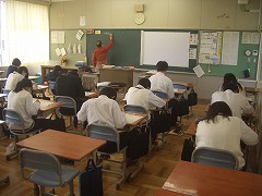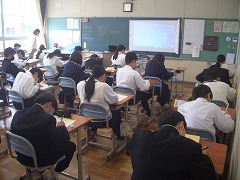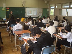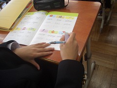 1年生は英語の授業にちょっとずつ慣れてきたかな?単語の練習をしていました。