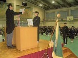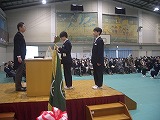 昨日までの雨模様から一転して穏やかな陽ざし中、本日、卒業生66名が旅立ちの時を迎えました。市長をはじめ、保護者の皆様や来賓の方々のご臨席のもとに会場は卒業生たちへの温かな祝意に包まれる中、一人一人に卒業証書を手渡しました。