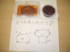 今日は授業の様子の写真を撮りに行くことができなかったのですが、調理実習で作ったハンバーグとデザートのおすそ分けをいただきました。上手にできていて、とてもおいしかったです。ありがとう!