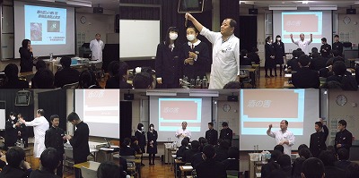 薬剤師の先生から薬の正しい服用の仕方や危険ドラッグの話をしていただきました。薬の服用の仕方では、水やぬるま湯以外で薬をなぜ飲んではいけないのか、実験も加えながらわかりやすく教えていただきました。