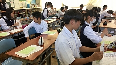 3年生は修学旅行へ向けて、しおり綴じをしました。