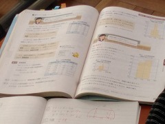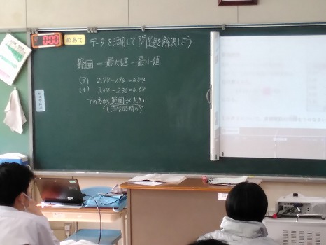 1年生数学は、データ活用について学びました。「累積度数」「階級」などの難しい用語が出てきましたが、度数分布表の数値と比べながら理解していきました。その後、ヒストグラム(度数分布図)と並べて、わかりやすさを比較しあいました。