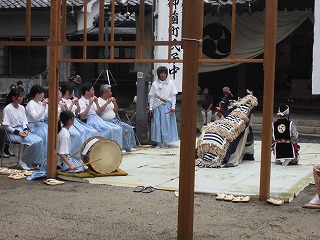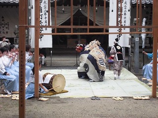 塩浜地区の伝統行事である獅子舞が御薗神社で行われました。御薗町と川合町の獅子舞が披露されました。