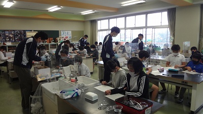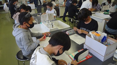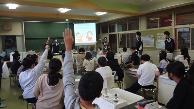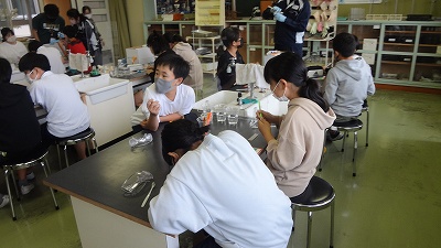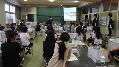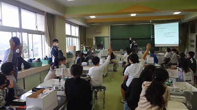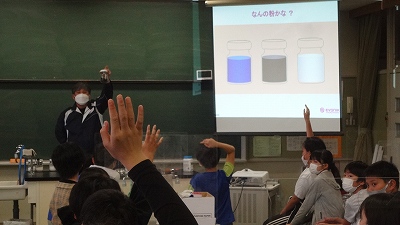 今日は、地元企業である「日本アエロジル」の皆さんにご来校いただき、企業連携授業をしていただきました。日常生活の至るところで使われている不思議な粉「シリカ」に触れ、実験を通じて体験させていただきました。「キャリア教育」の一環として職業インタビューもさせて頂き、子どもたちにとって学びの多い2時間になりました。