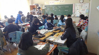6年生の社会科では、歴史学習に取り組んでいますが、今日は、「当時の人々は、太平洋戦争後にどのような思いを持っていたのか」について思いを馳せ、どんなことができそうなのかをグループで話し合い、意見を出し合いました。この予想をもとに調べ学習を進めていきます。