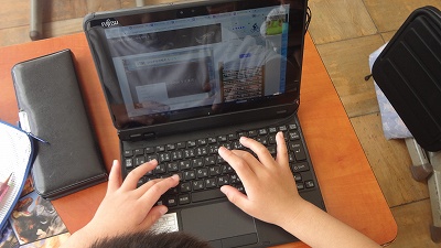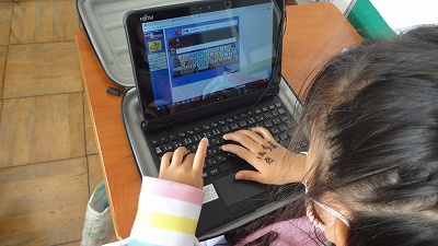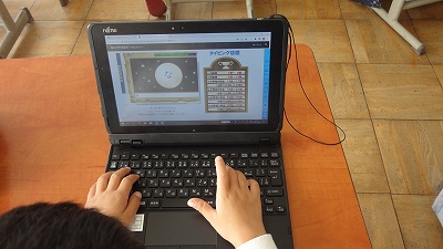 学習と学習のちょっとした合間の時間を有効に使って、「キーボードアドベンチャー」というソフトでタイピング練習をしています。早く打てるようになるためには、どの文字を打つにも、指が決まっています。ゆくゆくは手元を見ないでも打てるブラインドタッチが出来るように練習に励んでいます。