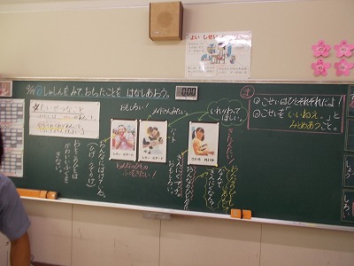 今日は、1年1組の教室で道徳科授業の研究授業がありました。前時に「個性」とはは何かを学んだ子どもたちですが、今日はメイド服を着た男性や、筋肉もりもりの女性の写真が出てきて初めに笑いが起きました。しかし、話し合いを続けていくうちに、