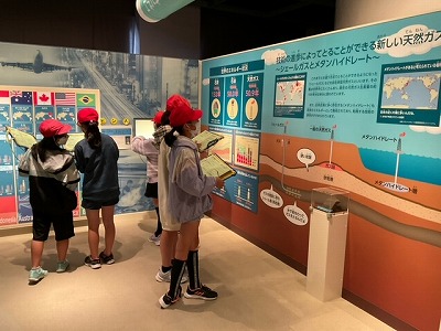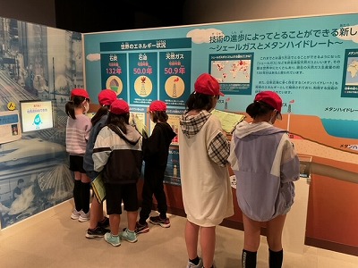 ガスエネルギー館での見学です。環境問題について学ぶコーナーを回って、自分たちで学習を進める姿が見られました。
