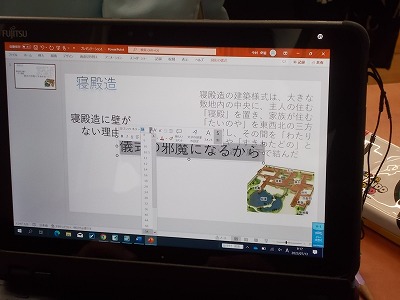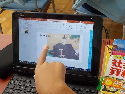 単元のまとめとして、人物、書物や当時の遊び、日本文化、服装、文字等に注目して、学習を通じてわかったことをタブレットにまとめていっています。一人一人が興味・関心に基づいて活動しています。