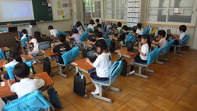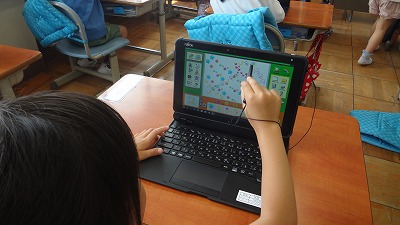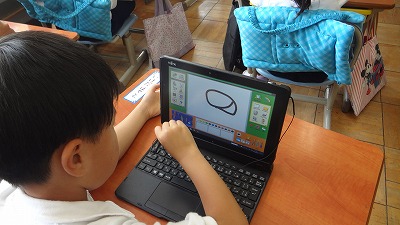 1年生の子どもたちが、タブレットを使い始めています。タップやクリック等の基本操作から始めましたが、子どもたちは楽しみながら学習しています。