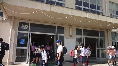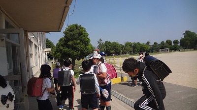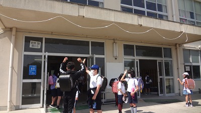 急に暑くなってきたため、熱中症対策としてスプリンクラーを設置しました。ミストを浴びて、涼しそうです。