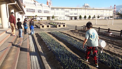 今日、朝の休み時間にキッズ農園の水やり当番は、5年生。玉ねぎやにんにく、カブに水やりをしました。5年生の皆さん、ありがとうございました!