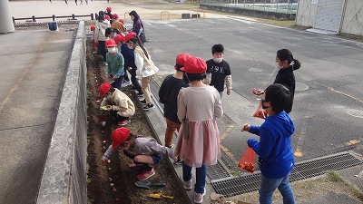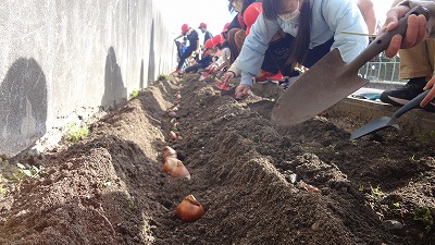 20分休みには、体育館南側の花壇にチューリップの球根を植えるボランティアを募集しました。いろいろな学年の子がたくさん作業をしに来てくれました。皆さん、ありがとうございました!