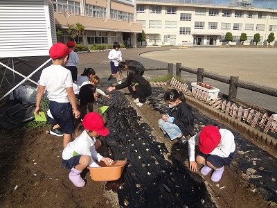 キッズボランティアの皆さんが、追加でニンニクを植えてくれました。来年の5~6月には立派なニンニクができると良いですね。