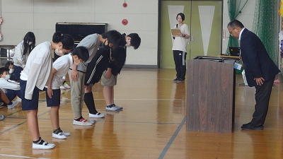 ・3月の卒業式における子どもたちの姿にも感動した。雛壇から保護者や在校生、それぞれの立場の人に向けて、旅立ちの決意、中学校へ向けての抱負、感謝の思い等を、心を込めて伝える姿が見られた。人数は少ないものの他校に引けを取らない立派な姿であった。