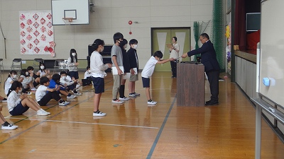 今日は、前期認証式と1年生を迎える会がありました。まず初めに、前期児童会役員・委員会委員長の認証式があり、全校のリーダーとして活躍する役員の認証を行いました。「より素晴らしい塩浜小学校にしよう!」というやる気が伝わってくる式でした。