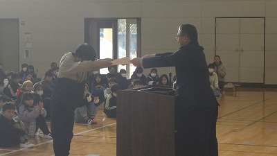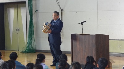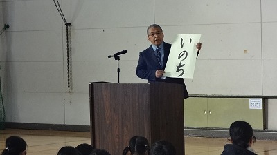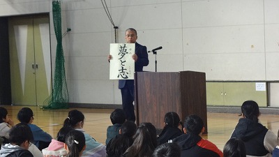 一つ目は、元旦に元旦にあった能登半島地震に触れて「いのち」の大切さ、二つ目は「夢と志」を持って頑張ることの大切さについてです。「夢と志」を持って頑張っていた人からプレゼントが届きましたと大谷翔平選手から送られてきたグローブの紹介もありました。