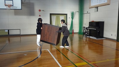 ・・・始業式終了後には、率先して片付けを行う6年生のステキな姿が見られました。