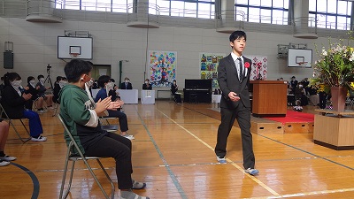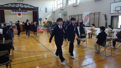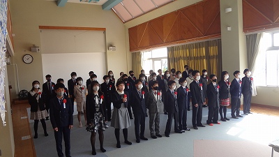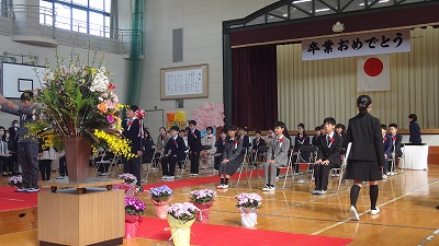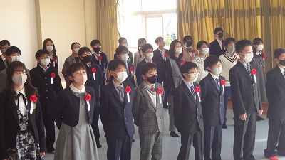 これまでの練習の成果を存分に発揮して、式に臨む姿勢、卒業証書を受け取るときの姿勢、入退場の姿勢、呼びかけ、歌声、どれを取っても最高の姿を見せてくれました。