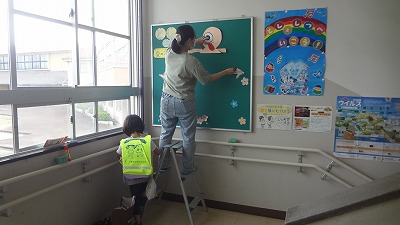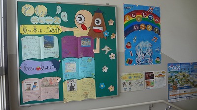 今日は、図書ボランティアさんが来校され、「としょニュース」「夏の本をご紹介」として、子どもたちが本と向き合えるように掲示物を作成・掲示してくださいました!早速、掲示物に見入る子どもたちの姿がありました。図書ボランティアさん、ありがとうございました!