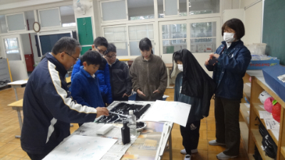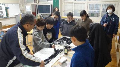 今日は、校長先生の出前授業です。まず、墨をはじく液体で星などの絵を筆で描き、墨を塗って絵を完成させます。子どもたちは興味津々!楽しく作品を仕上げました!