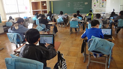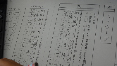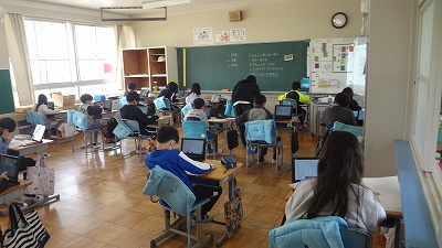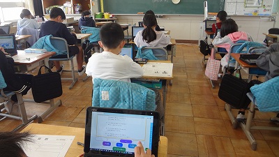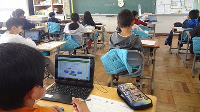 4・5年生では、今日は「みえスタディチェック」がありました。タブレットに表示された問題を見ながら、解答用紙に考えを書き込んでいきます。デジタルと紙媒体の併用でしたが、子どもたちは最後まで集中して取り組んでいました。