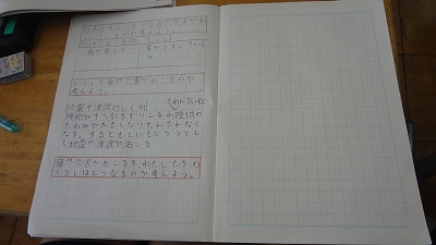 5年生の理科では、どうして自然災害が起こるのか、災害が起きたときはどのように対応するとよいのか、災害と環境問題との関係について学んでいます。このような今日的な課題は、これからも考え続けていく必要がありますね。