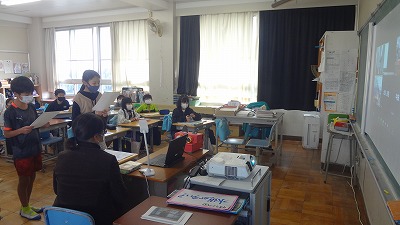4年生の総合的な学習の時間では、本日、初めて他校(内部小学校)とオンラインで交流する授業を行いました。