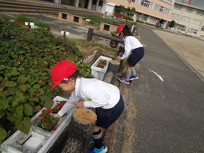 今日は、20分休みにキッズ農園に花の苗植えや、芋畑の草取りをするために、たくさんの子どもたちがボランティアに来てくれました!最近、低学年を中心にボランティアに燃えている子どもたちが増えてきて、嬉しい限りです!