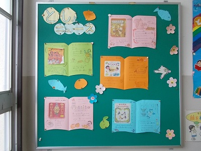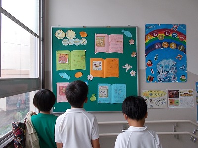 8月31日、図書ボランティアさんが来校され、2学期を迎える前に秋バージョンの掲示物に貼り替えていただきました。子どもたちは、「この本がいいなぁ!」と掲示物に見入っていました。図書ボランティアさん、いつもありがとうございます!