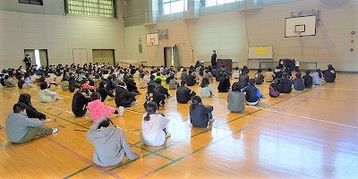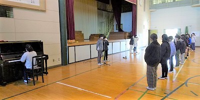 まずは、全校を代表して6年生が校歌を歌いました。続いて、校長先生からは「『友達に優しくできる2学期にしましょう』と始まった2学期でしたが、皆さんは友達に優しくしたり、友達から優しくしてもらった2学期だったでしょうか」という問いかけがあり、たくさんの子が手を挙げていました。そして、学校教育目標を意識して頑張っていこうという話がありました。