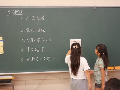 今日、3年生では学活の時間に、1学期の自分たちの生活を振り返り、よりよいクラスを作るために、2学期の目標について話し合いました。「あまり高い目標でも、1学期に出来なかったやん。まずは、出来る目標にしよう!」等と、話し合う姿が見られました。ステキな2学期になると良いですね。