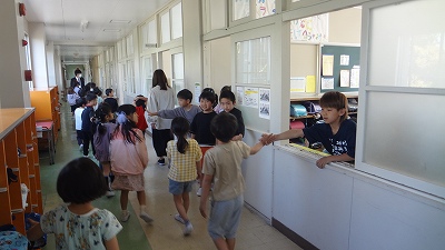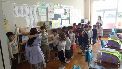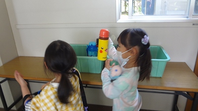 1年生の教室を出発する前の帰りの用意の時間には、友達の水筒を運んであげる優しい姿も見ることが出来ました。