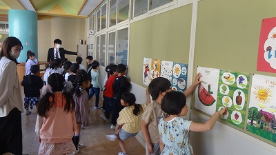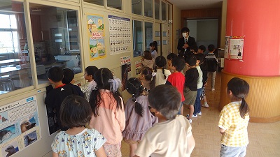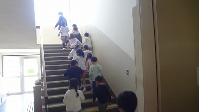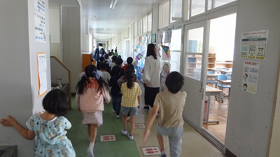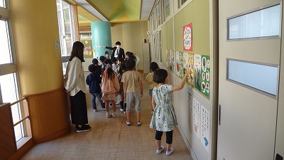 今日は、午後の緊急引き渡し訓練が始まる前に、1年生が学校探検をしました。「ここが〇年生の教室だよ」「ここは理科の実験をする教室だよ」等と、担任引率のもと、各部屋を紹介してもらいながら校舎内を回りました。1年生の子どもたちにとっては、見るものすべてが新鮮で、目を輝かせながら回りました。