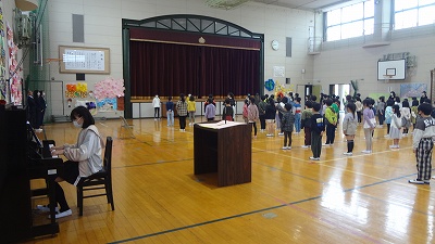 今日から新年度スタートです。着任式・始業式・入学式がありました。みんな1つ上の学年になり、ひと回り大きく感じました。それぞれの学級でやる気に満ちスタートを切りました。6年生は入学式の準備・片付けを進んでやる姿が見られ、最高学年としての自覚を感じさせられました。