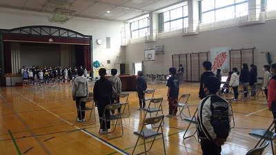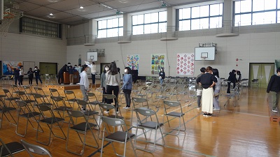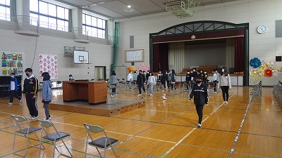 卒業式には、在校生代表として5年生が出席してくれます。昨日から5・6年生合同での練習が始まりました。5・6年生で同時に動く場面や、相互にかけ合う場面等、ひと通りの流れを確認しました。途中の休憩時間には、6年生が残り少ない小学校での時間を惜しむかのように、ゆったり過ごしていました。
