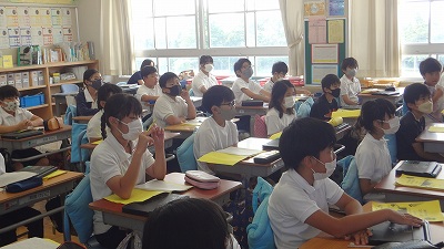 5年生では、四日市公害についての学習を進めています。今日は校区内にお住いの語り部の方にご来校いただき、子どもたちの質問にたくさん答えていただきました。最後に仰られた「環境を守ることは、生命を守ることです」というお言葉がとても印象的でした。ご多用のところ、子どもたちのためにお越しいただきまして、ありがとうございました!