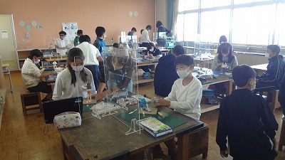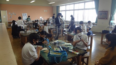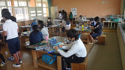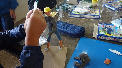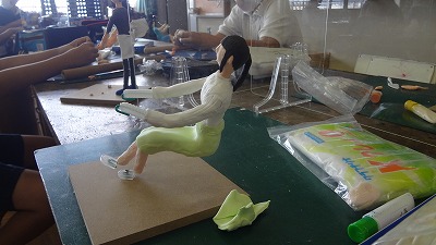 6年生では、キャリア教育の取組と関連させて、「未来の私」を想像して作品を制作しています。これは、何を実現している場面でしょう?完成が楽しみですね。