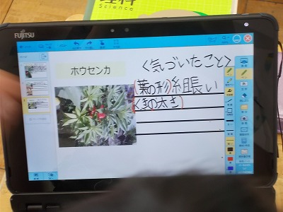 それぞれが観察した花の特徴を、みんなで交流し、どこを見るとよいかについて学びました。