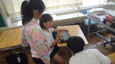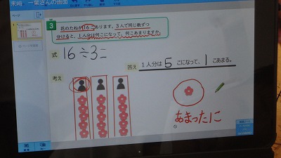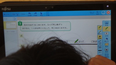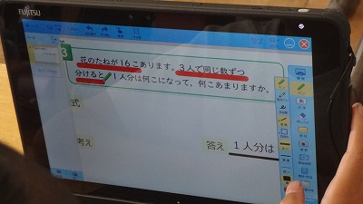 今日は、これまで学習してきたことを活用して「答えの見つけ方を考えよう」というめあてのもと、問題に取り組みました。子どもたちは、解決方法の道筋を友達に説明できるように考え方をタブレットにまとめ、それぞれの考えを交流する姿が見られました。友達との交流を通して、考えを深めていました。