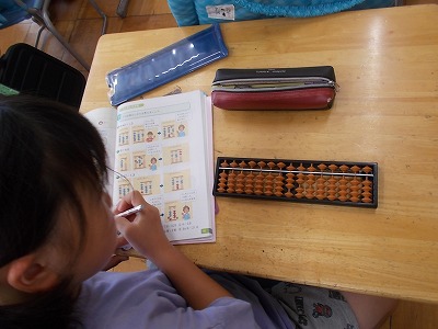 4年生算数科の教科書には、そろばんによる計算の仕方が説明されています。そろばんのしくみを学んでいます。