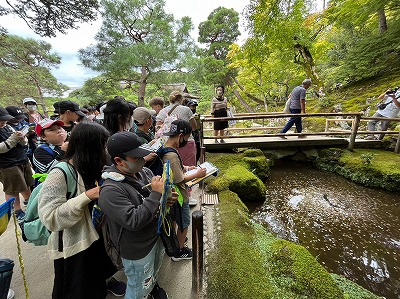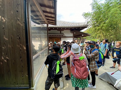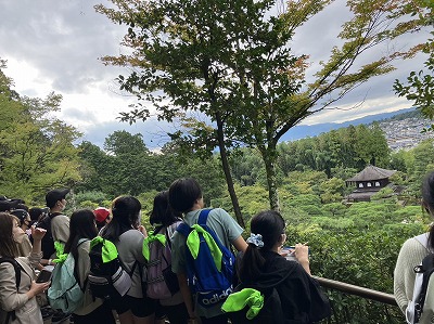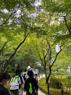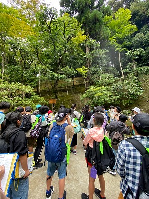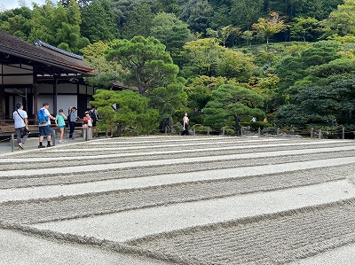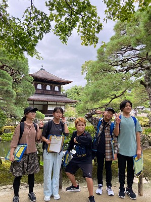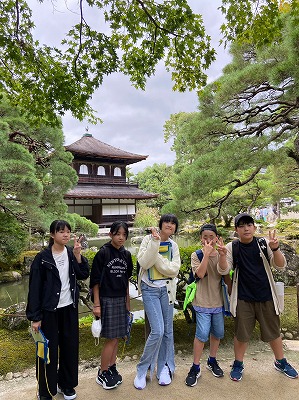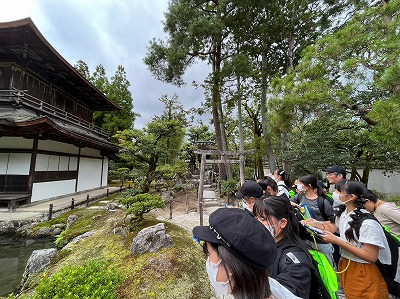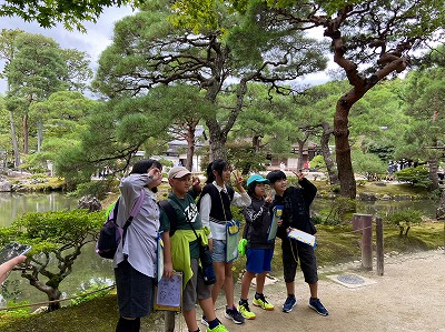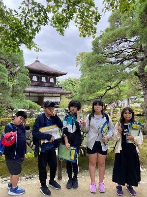 慈照寺銀閣に到着しました。金閣とは異なる趣きのある雰囲気に魅了される子どもたちでした。境内を一望できる庭山に登って、景色を楽しんだひと時でした。