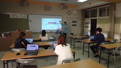 放課後のちょっとした時間を生かして、ミニICT研修会をしました。タブレットを用いて「こんなことができるよ!」という実践を還流しました。校内の教員が講師を務め、教員同士が学び合うOJT(On Job Training