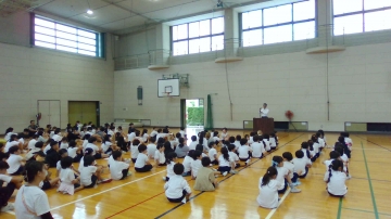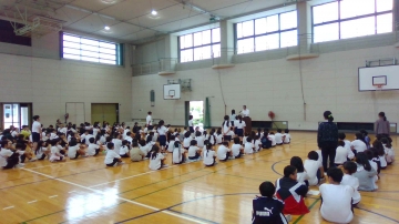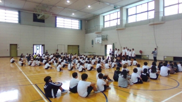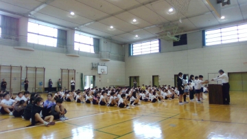 体育館で出発式を行い、全員揃って予定通り出発しました。