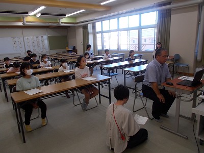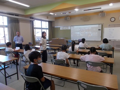 今日は、1学期の最終日、終業式がありました。熱中症対策のため、体育館には参集せず、代表者だけが視聴覚室に集まり、オンラインで終業式を行いました。