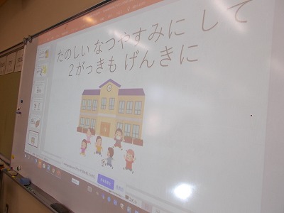 明日からは子どもたちが楽しみにしている夏休みが始まります。保護者の皆様におかれましては、お子さんが有意義な夏休みを送れるよう、お声かけやサポートをお願い致します。2学期に、ひと回り成長したお子さんに会えることを楽しみにしています。